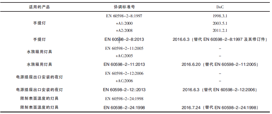 1  LVD指令中有關照明燈設備的協(xié)調標準更新