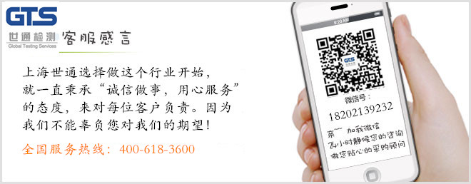 客戶服務電話:021-33637866  021-33637858  E-mail:info@gts-lab.com  Copyright © 2008-2012 上海世通檢測技術服務有限公司 版權所有 地址:上海市閔行區(qū)申富路128號D-1棟2樓  滬ICP備10206217號