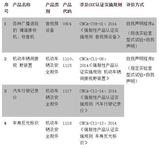 轉(zhuǎn)為自我聲明評(píng)價(jià)方式的產(chǎn)品清單