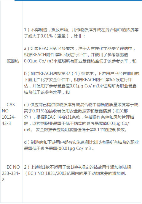 ECHA提議將五種鈷鹽加入REACH法規(guī)限制篇