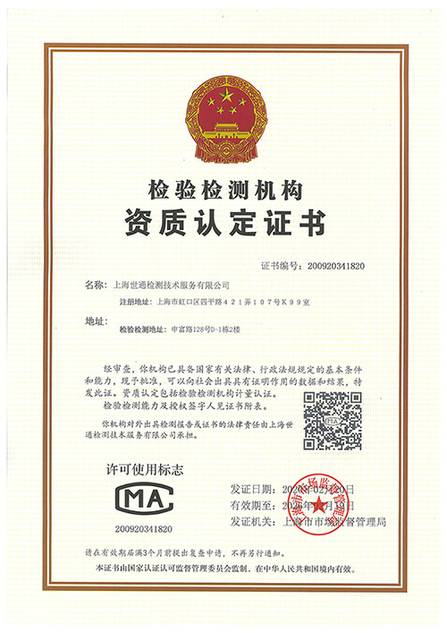 世通檢測CMA資質(zhì)證書